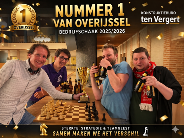 Een van de gezelligste toernooien van het jaar stond op het programma en uiteraard waren wij er weer bij. CEO Gerard ten Vergert kon helaas niet aanwezig zijn en daarom mochten zijn medewerkers het dit jaar zelf opknappen. Chief Operating Officer, ten Vergert junior ging voorop in de strijd aan bord 1. Chief Marketing Officer, Fabian, die alles weet van nieuwerwetse media zoals kranten mocht op bord 2. Chief Technology Officer, Robin, onze technische man mocht op bord 3. Chief Financial Officer, Gijs moest zorgen voor de afrekening op bord 4.