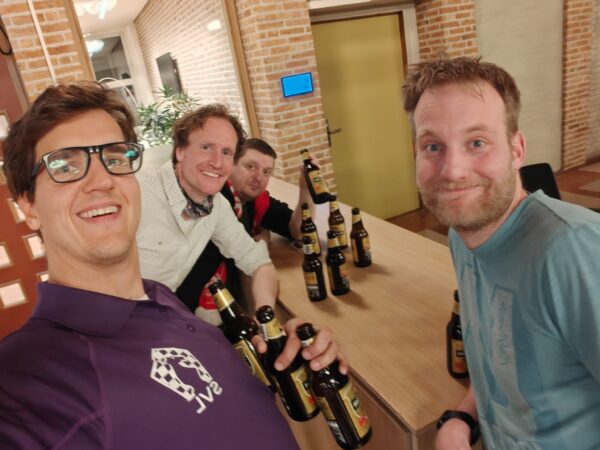 Een halve liter op de heenweg leek een logische warming-up te zijn voor dit evenement. Gevolgd door 8 muntjes van de organisatie die uiteraard ook voor bier zouden moeten kunnen worden ingewisseld. Dit zorgde voor wat vertraging, maar na wat zoekwerk in de kelder van het gemeentehuis in Hengelo werden de kratjes bier ook gevonden. 2 muntjes 1 biertje, maar zo kwamen wij het intropraatje wel weer door. Traditiegetrouw wordt er elke ronde door ons team een biertje geconsumeerd en na een verplaatsing van de pinterminal naar een plek met betere wifi konden we dus ook 32 muntjes halen. Zodat we aan de eerste ronde konden beginnen met een biertje.