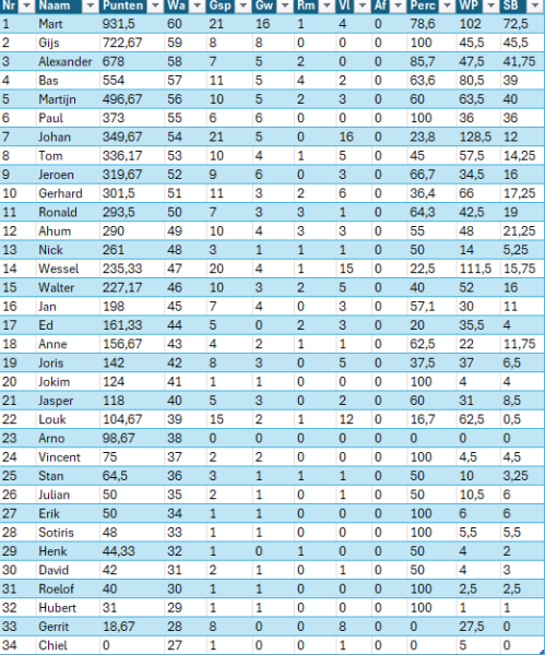 Bovendien hadden we met deze uitslagen precies wat we vooraf wilden. Arno stond wat pionnen voor, en teamleider Ben van Almelo 2 had bij deze 3,5-3,5 niet genoeg aan een halfje om ons voorbij te streven. Zo kon Arno dus risicoloos doorpingelen naar de winst. 3,5-4,5. Lonneker 1 ongedeeld 2e en het publiek begon luidkeels Arno van Akkeren te scanderen. 7,5 uit 8, wat een score. Volgend seizoen mogen we weer op dit niveau uitkomen en weer 72 van dit soort schitterende partijen spelen. Het was nog eventjes onrustig in wijkcentrum De Schelfhorst.