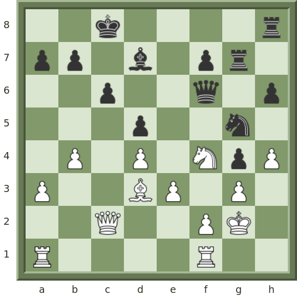 [ dit schaakje lijkt gunstig voor Zwart (Wit deed Kf1) maar deze stelling is iets beter voor Wit (+0,7) ]