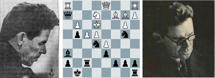 Nezhmetdinov speelde hier Dxf6 en hield een onhoudbaar initiatief op de Konings-vleugel, op weg naar een van zijn vele artistieke schaak-overwinningen.