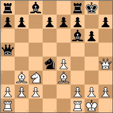 In deze stelling is Wit aan zet. Zwart heeft net Lg7-f6 gedaan en Wit lijkt zo niet meer dan remise te hebben door de zetherhaling Dh6 Lg7 Dh4 Lf6 etc. maar de Tartaarse (*) schaakmeester wilde hiermee geen genoegen nemen. Een getuigenis: