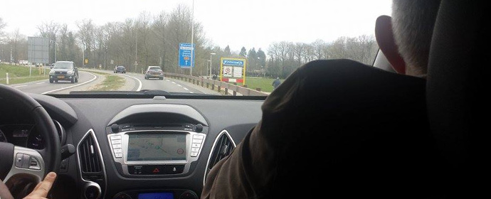 Henk, die Roelof, Leon en Johan had opgehaald, ging naar verluid rechts bij Lunten en dit zorgde ervoor dat zij ruim op tijd in Winterswijk arriveerden. Wij gingen ook vrij soepeltjes en toen de navigatie van de Walter-mobiel het weer leek te begrijpen, schakelden we dus over van de Ben-Gijs, niet op de Tom-Tom (die bleef rustig zitten), maar op de navigatie van de Walter-mobiel.